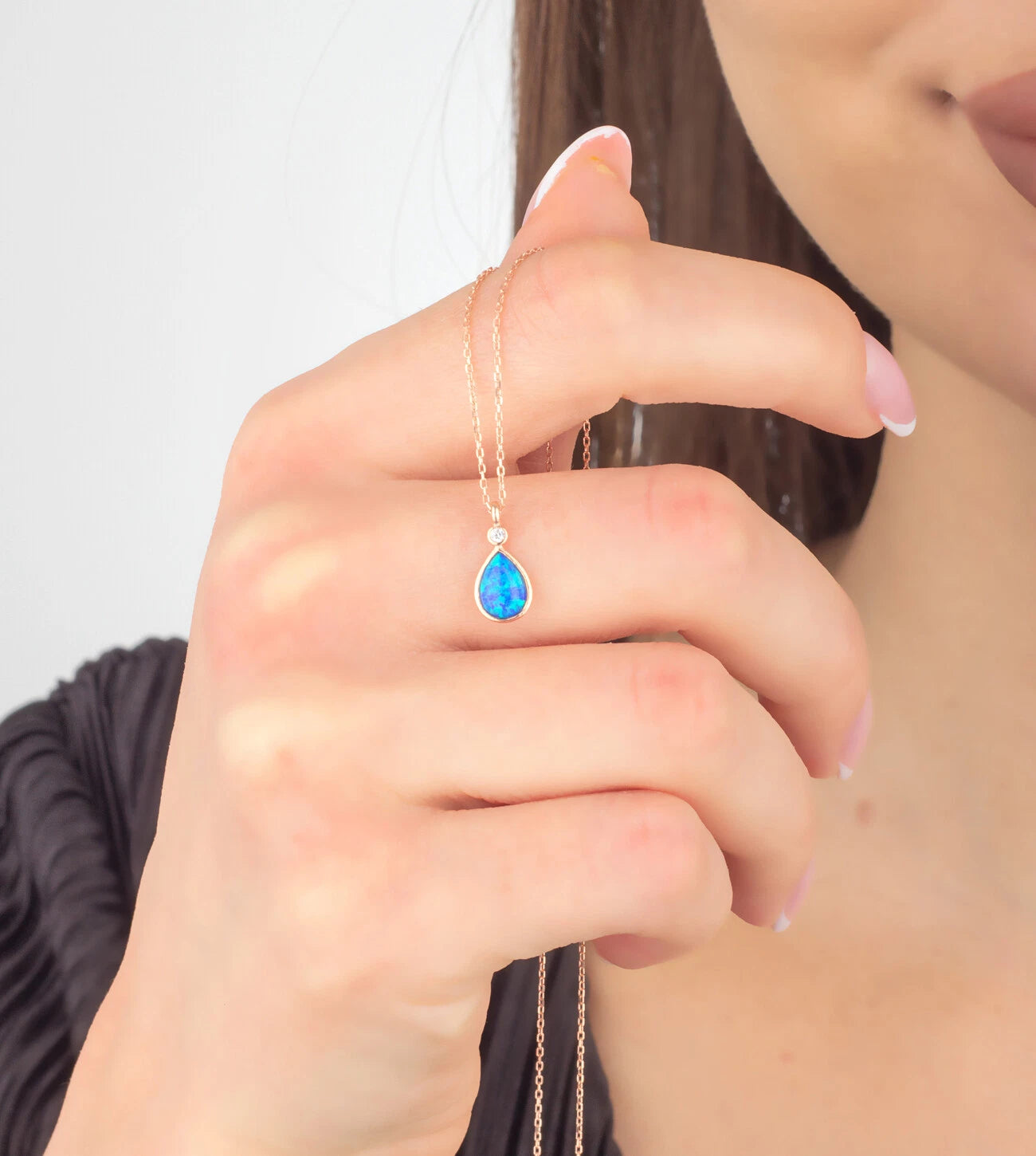 Die Opal Stein Tropfen Halskette ER0842 vereint Handwerkskunst und modernes Design – ein stilvolles Accessoire und ideales Geschenk.