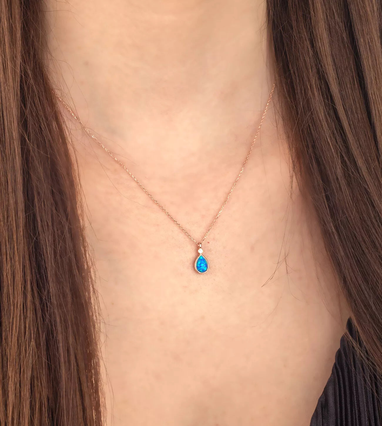 Opal Stein Tropfen Halskette ER0842 – Handgefertigt aus 925 Sterling Silber