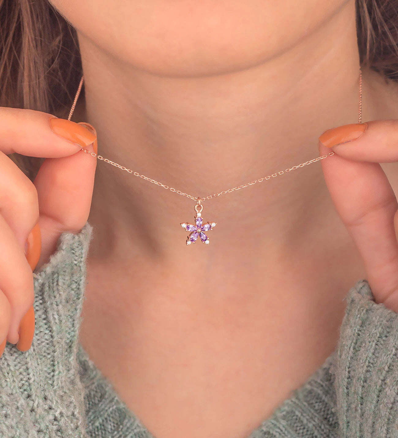 Amethyst Stein Narzisse Blume Halskette ER0616 – Handgemachter Schmuck
