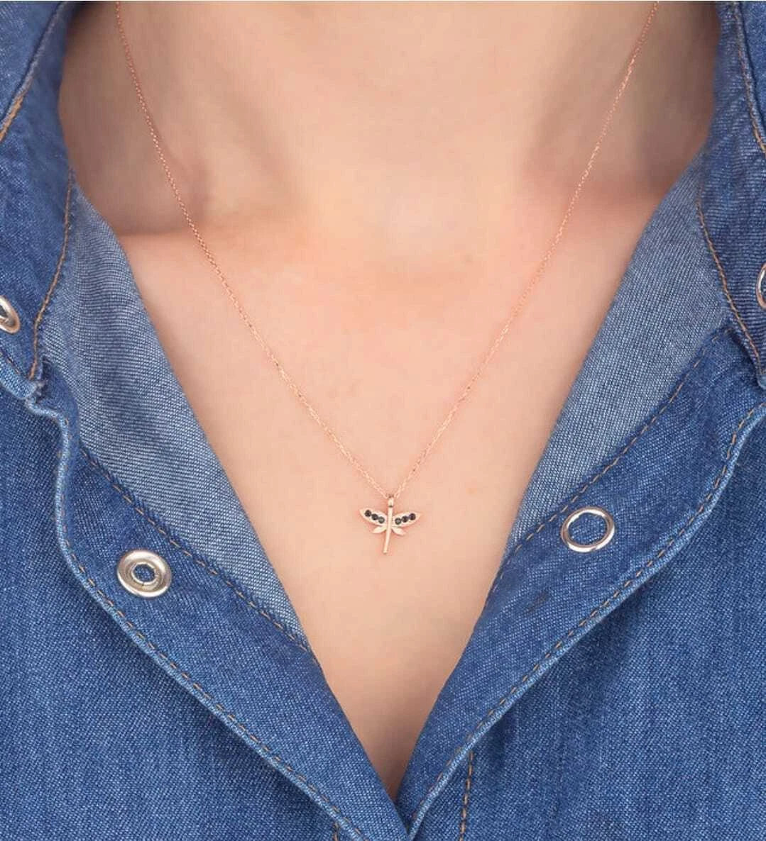 Mit der Onyx Stein Mini Libelle Halskette ER0444 tragen Sie ein zeitloses Schmuckstück voller Eleganz – ein perfektes Geschenk für Ihre Lieben.