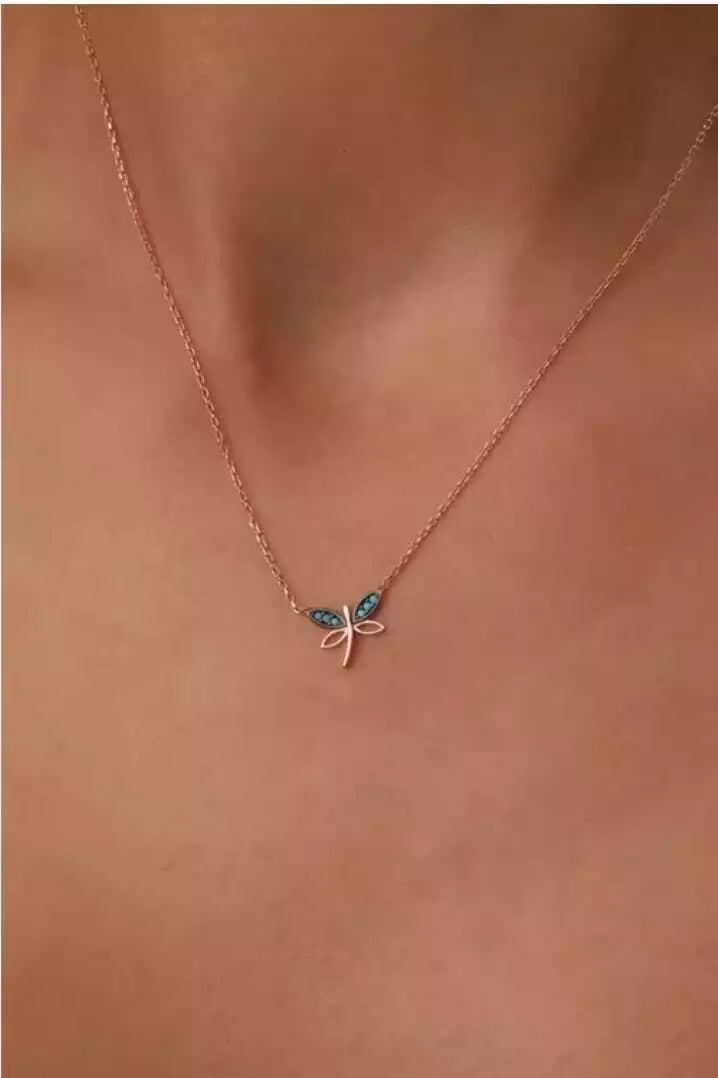 Eine feine Halskette aus 925er Sterlingsilber mit zartem Libellen-Design und funkelndem Zirkon. Elegantes Schmuckstück, ideal als Geschenk für besondere Anlässe.